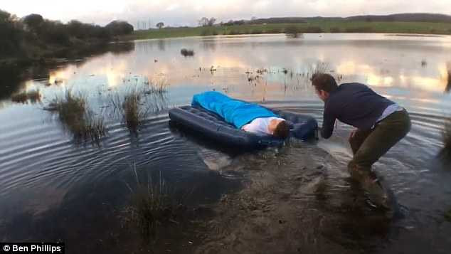 Lợi dụng lúc chàng trai ngủ say, đám ‘bạn hiền’ bèn bày trò kéo đệm anh chàng cho thả trôi sông mà chàng ta không hay biết gì.
