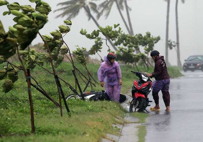 Với sức gió mạnh cấp 5-6, nhiều người đi xe máy đã bị quật ngã; một số cây xanh bị quật đổ; tàu thuyền không kịp kéo lên bờ bị sóng đánh chìm...