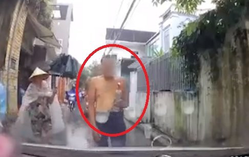 Đoạn clip ghi lại hình ảnh người đàn ông cởi trần, cầm chai rượu đi lại không vững giữa đường, rồi bất ngờ quay lại chặn đầu ô tô gạ gẫm tài xế uống rượu.