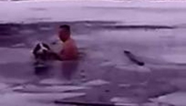 Người đàn ông Nga được dân mạng ngợi ca như anh hùng sau khi dũng cảm lao xuống hồ băng dưới cái lạnh khủng khiếp để cứu chú chó đáng thương bị mắc kẹt.