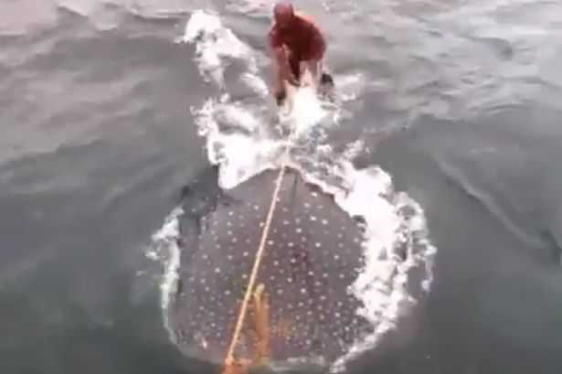 Clip: Người đàn ông lướt sóng trên lưng cá mập voi quý hiếm gây 'sốc'