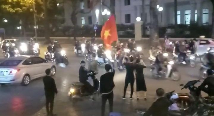 - người hâm mộ ăn mừng chiến thắng u23 việt nam