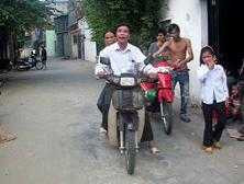 Để sự việc đến với độc giả một cách khách quan và sinh động nhất, phóng viên VTC News ghi lại hình ảnh vợ chồng anh Lê Đình Hậu đèo nhau trên chiếc xe Dream quen thuộc, "vi vu" qua một số con hẻm. Tại các điểm giao nhau ngã ba, ngã tư, anh Hậu đều bấm còi và bật xi nhan xin đường.