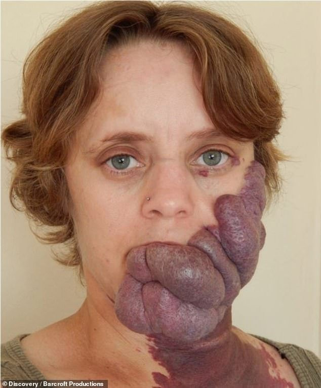 Cô Kiana Smith (40 tuổi, đến từ Úc) có một vết chàm khổng lồ trên mặt, gây biến dạng khuôn mặt nghiêm trọng, khó ăn uống, tầm nhìn bị ảnh hưởng.