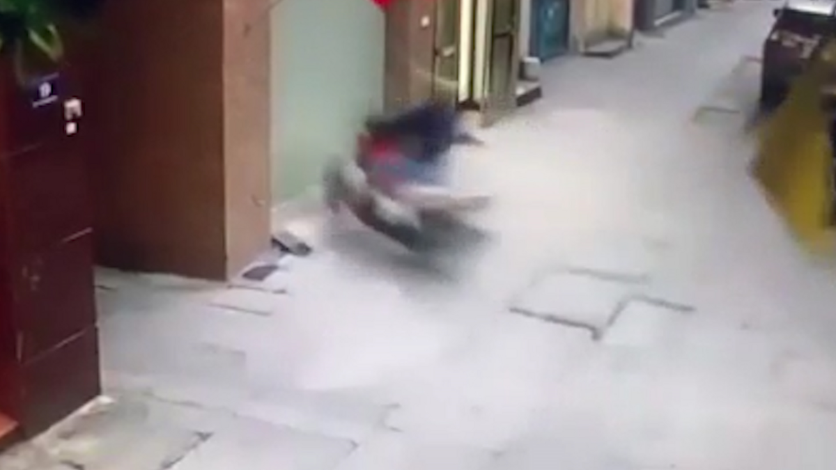 Clip: Người phụ nữ lao như tên bắn vào cửa sắt nhà dân