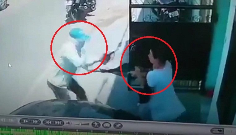Clip: Người phụ nữ tay không đánh tên cướp có súng chạy trối chết