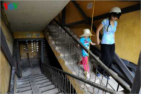 | Cầu thang cũ nát ở khu nhà E6 - Ảnh: VOV |