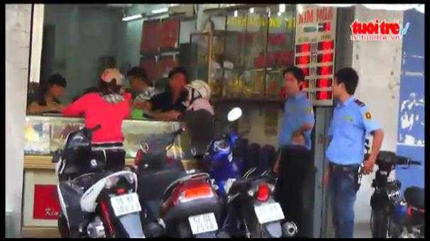 Nhân viên tiệm vàng đi lấy tiền vừa về đến trước cửa thì bị một người lạ mặt chạy xe máy áp sát, dàn cảnh móc túi.