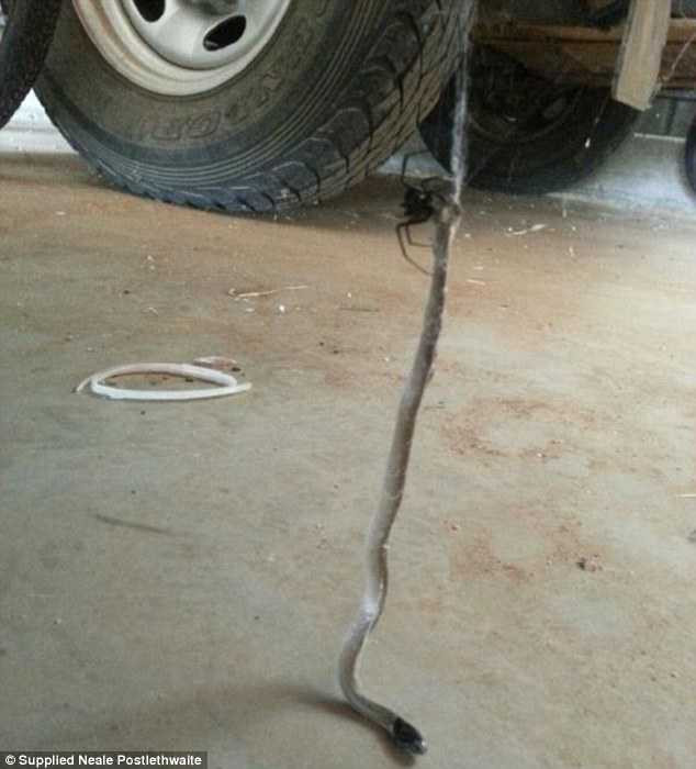 Một nông dân Victoria đã vô cùng ngạc nhiên khi thấy con nhện độc nhả tơ kéo con rắn lủng lẳng dưới gầm xe ô tô.