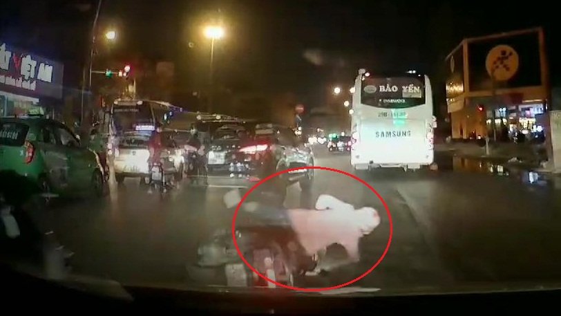 Người phụ nữ xi nhan rẽ trái nhưng thiếu quan sát, va chạm liên tiếp với 2 ô tô rồi ngã sõng soài trên đường Phạm Văn Đồng, Hà Nội.