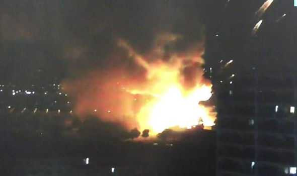 Tiếng nổ vang rền như sấm tiếp theo đó là cầu lửa màu cam bùng cháy dữ dội với những cột khói cuồn cuộn. Vụ nổ kéo dài khoảng 10 phút kèm theo mùi thuốc súng.