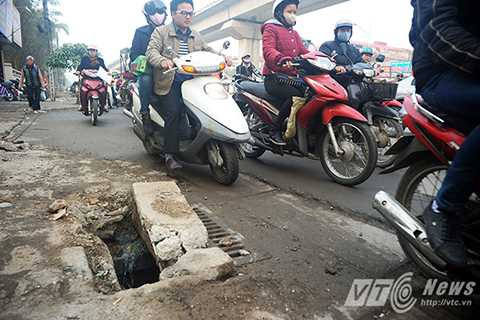 Mặc dù vậy, việc chạy xe trên vỉa hè cũng không hề dễ dàng do vỉa hè tại khu vực này đang đào bới ngổn ngang, thậm chí còn xuất hiện cả những ống cống mất nắp, những hố sâu cả nửa mét mà không hề có một tấm biển cảnh báo nguy hiểm nào.