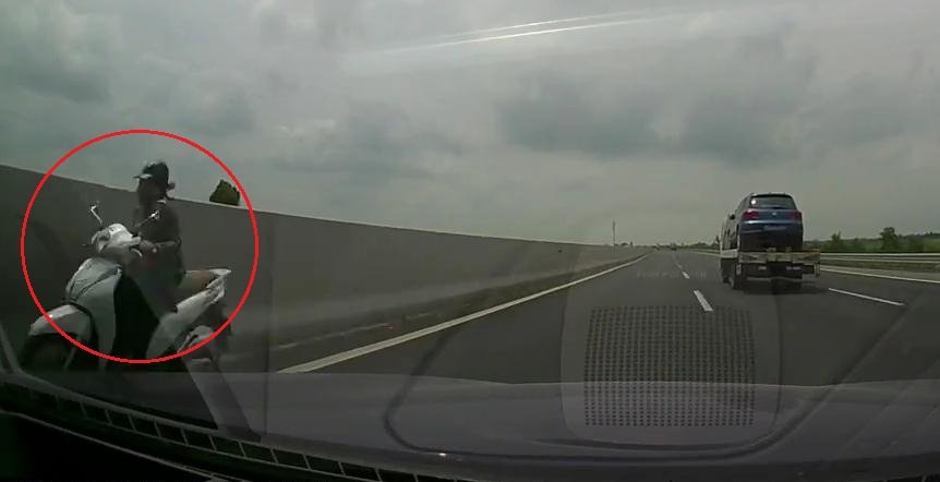 Người phụ nữ liều lĩnh chạy xe máy ngược chiều trên cao tốc Hà Nội - Hải Phòng vào trưa 3/4, đối đầu với ô tô đang chạy tốc độ hơn 100km/h khiến người xem hoảng hồn.
