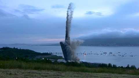 Hơn 1,4 triệu viên gạch cùng 20.000 tấn bê tông đã bị phá hủy bởi 2 vụ nổ có kiểm soát theo sát nhau, bắt đầu từ vị trí ở tầng 10. Ống khói của nhà máy điện Inverkip được cho là công trình cao nhất ở Scotland.