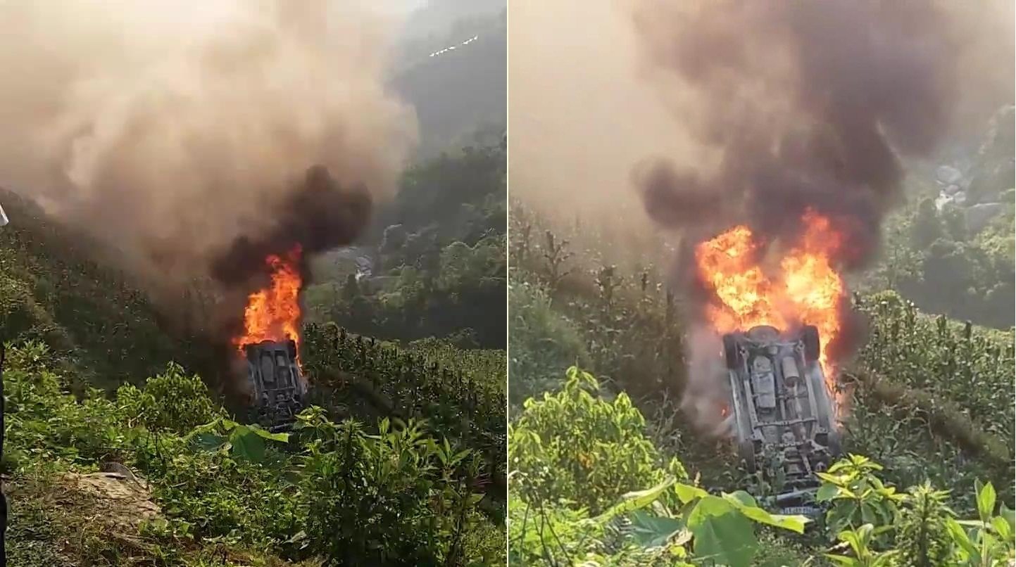 Video: Ô tô 7 chỗ lao xuống vực, bốc cháy ngùn ngụt ở Lào Cai