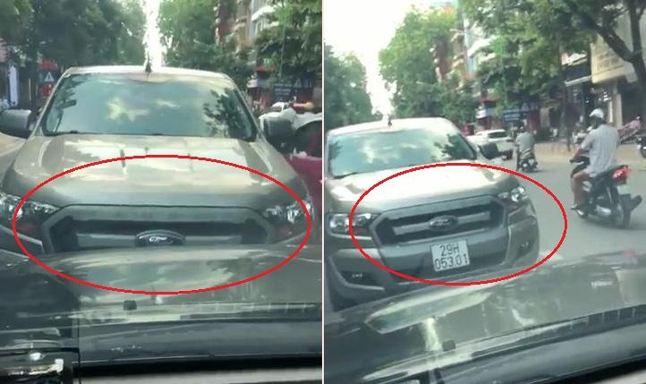 Ô tô bán tải BKS 29H-053.01 đi ngược chiều, lì lợm đấu đầu với ô tô đi đúng luật trên phố Huế, Hà Nội chiều 29/5.