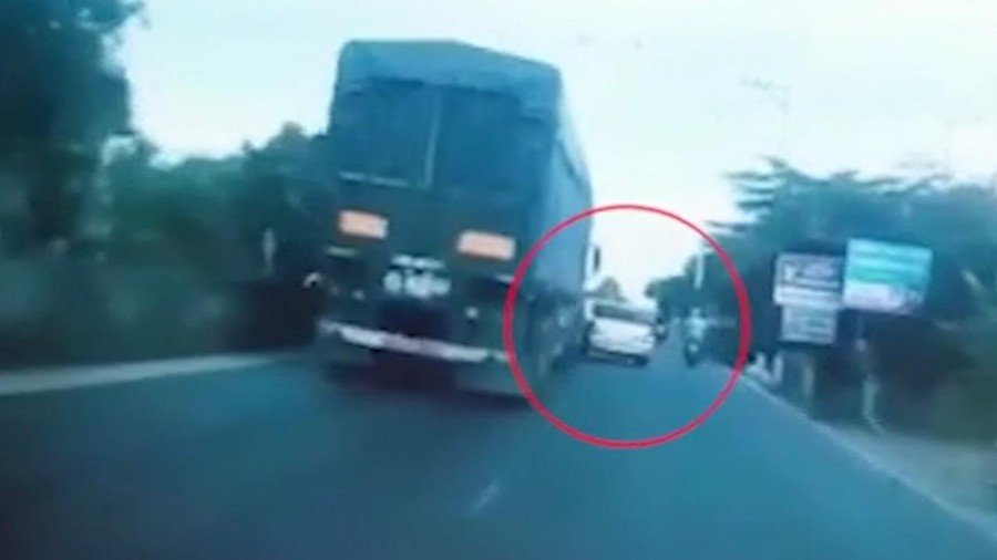 Clip: Ô tô con vượt ẩu bị container húc bay lên dải phân cách