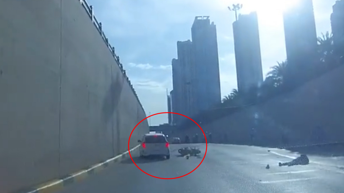 Ô tô đánh lái gấp tránh người phụ nữ đi xe máy tự ngã dưới hầm chui