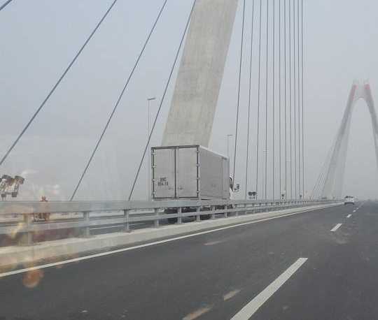 Một video ghi lại cảnh ô tô tải đi ngược chiều trên cầu Nhật Tân với tốc độ rất nhanh được đăng tải trên một số trang mạng vào ngày 21/1.