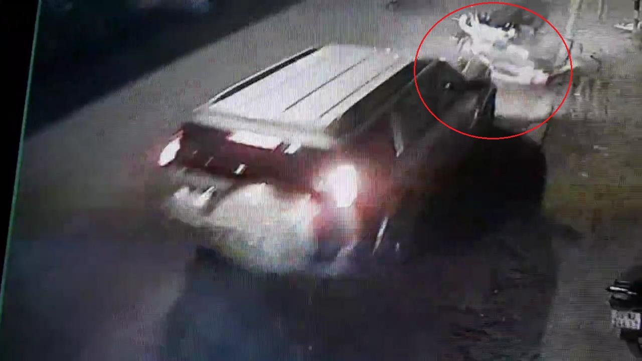 Thấy xe máy di chuyển đến chốt công an để khai báo sự việc, ô tô chạy theo tông ngã từ phía sau. Bị một người dân chặn đầu ngăn lại, tài xế vẫn rồ ga bỏ chạy khiến người này ngã sõng soài ra đường.