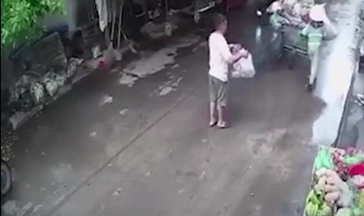 Khệ nệ mang bao rác ra xe, người đàn ông ngơ ngácđứng như trời trồng một lúc lâu sau khi cô lao công đẩy xe đi, không nhận bao rác.