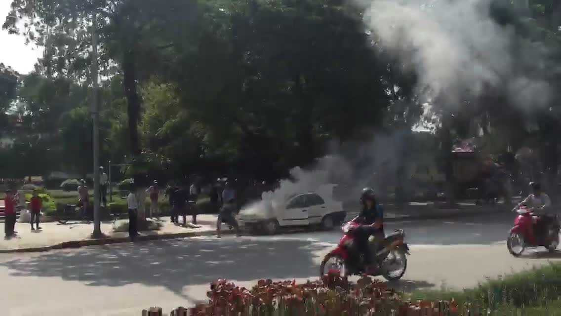 Clip ôtô bất ngờ bốc cháy, xì khói trên phố ở Hà Nội