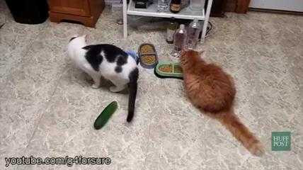 Không hiểu vì lý do gì, lũ mèo luôn giật mình kinh hãi khi chạm trán với… những quả dưa chuột.