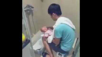 Người đàn ông đảm đang này có thể thoăn thoắt tắm, gội và thay đồ cho bé sơ sinh một cách thuần thục.