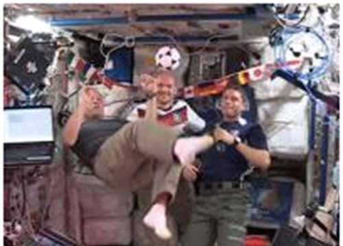 Tại vòng chung kết lần này, đội Đức và đội Mỹ được xếp cùng bảng G để giành suất vào vòng trong. Các nhà du hành trên, dù ủng hộ đội tuyển của mình, nhưng vẫn mong đội bạn có cơ hội vào sâu. Trong đoạn video, ba nhà nghiên cứu đồng thời gửi lời chúc may mắn đến các đội bóng tham dự World Cup năm nay.