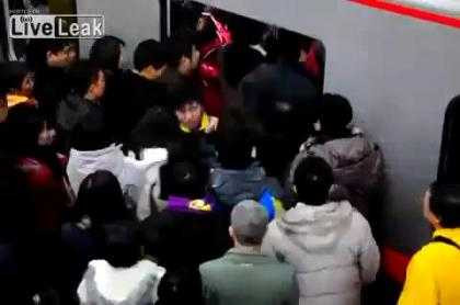 | Cảnh chen lấn khủng khiếp ở tàu điện ngầm, hành khách bên trong muốn ra ngoài cũng đành bất lực với đám đông xô đẩy >> Xem Clip |