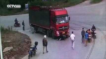 Sau khi bị xe tải cán ngã và kéo lê một đoạn ở khúc cua, người đàn ông đi xe máy được người qua đường giải cứu khỏi gầm xe và sống sót thần kỳ dù bị chấn thương ở võng mạc.
