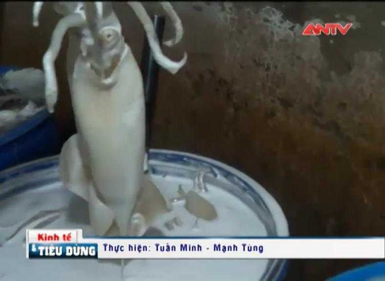(VTC News) - Tại Hà Nội, công an quận Ba Đình kiểm tra khu vực buôn bán thủy sản tại khu vực chợ Long Biên, phường Phúc Xá, Ba Đình, Hà Nội; tại kho G2, cơ quan chức năng đã bắt quả tang Vũ Mạnh Cầm trú tại Ân Thi, Hưng Yên là nhân viên khu thủy sản đang đổ hàng chục kilogam mực ôi, bốc mùi vào các thùng phuy cỡ lớn có chứa hóa chất công nghiệp.
