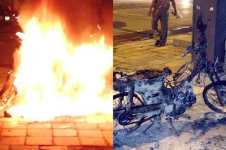 Clip: Quái xế bị bắt chửi CSGT, châm lửa tự đốt xe