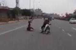 Clip: 'Quái xế' bốc đầu xe, bạn lộn cổ xuống đường