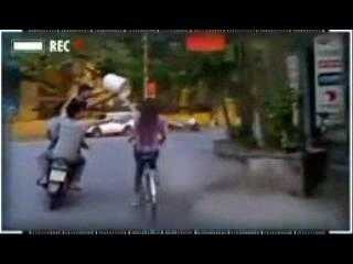 (VTC News) - Trò đùa oái oăm này đã gây bức xúc trong dư luận khi 3 thanh niên đèo nhau trên 1 chiếc xe máy hất cả xô nước vào cô gái đi xe đạp trên đường.