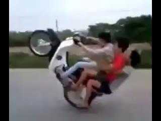 Clip: 'Quái xế' kẹp ba bốc đầu, ngã lộn nhào trên đường