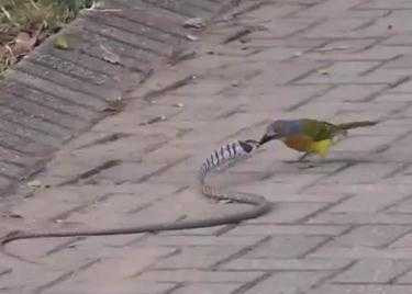 (VTC News) - Một con rắn dây bị chim Grey-headed Bushshrike (thuộc họ Malaconotidae) tấn công liên tục mà không hề phản kháng.