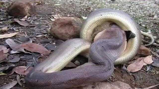 Tại Công viên Quốc gia Nitmiluk, thị trấn Katherine, Australia, một con rắn khổng lồ đã nuốt chửng con chuột túi.