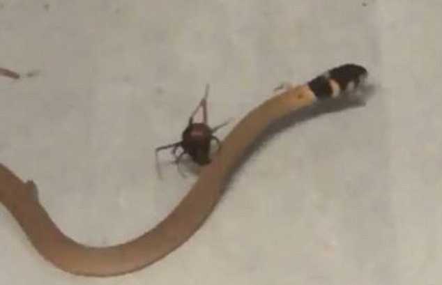 Clip: Rắn nâu giãy giụa tuyệt vọng trong lưới của nhện độc lưng đỏ