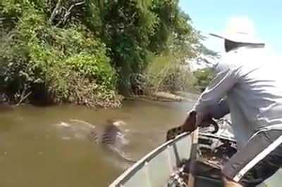 Đoạn clip ghi lại cảnh một nhóm người Brazil phát hiện ra con trăn xanh khổng lồ, một người đàn ông liền dùng tay không tóm lấy đuôi con trăn, kéo ra khỏi nơi ẩn nấp.