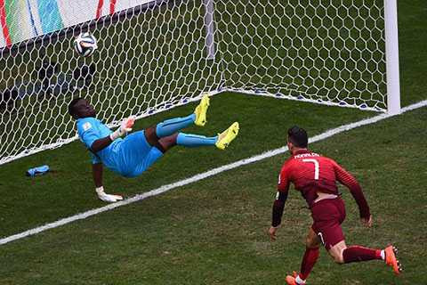 Phút 19, đường tạt bóng của Pereira từ cánh phải đã loại bỏ hoàn toàn các hậu vệ Ghana nhưng cú đánh đầu của CR7 lại đi trúng vị trí của Dauda. Nếu ở trong màu áo Real Madrid, những tình huống như vậy siêu sao 29 tuổi rất ít khi bỏ lỡ, nhưng trong màu áo Bồ Đào Nha, đó lại không phải chuyện hiếm.