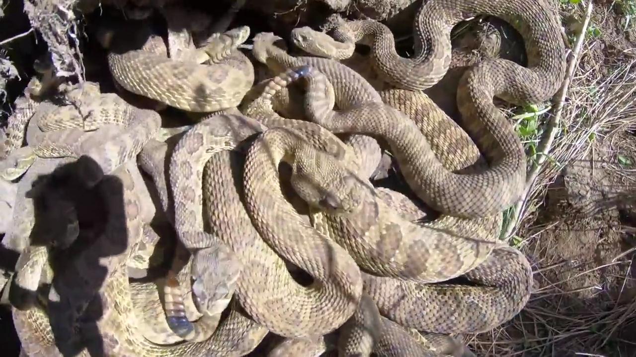 Clip được quay tại thị trấn Grass Range, bang Montana, Mỹ. Người quay clip cho biết, rắn chuông thường ra khỏi hang vào mùa hè, khi thời tiết ấm áp. Những con rắn dường như tỏ ra hung dữ để phòng thủ chứ không muốn tấn công. Nếu bị phát hiện, phần lớn hang ổ rắn chuông như thế này sẽ bị các chủ đất ở Montana tiêu diệt.