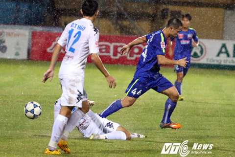 Tiền đạo Samson của Hà Nội T&T đã có một pha 'đóng kịch' trong vòng cấm HAGL và qua mặt được trọng tài chính để mang về bàn thắng từ chấm 11m cho đội chủ nhà.