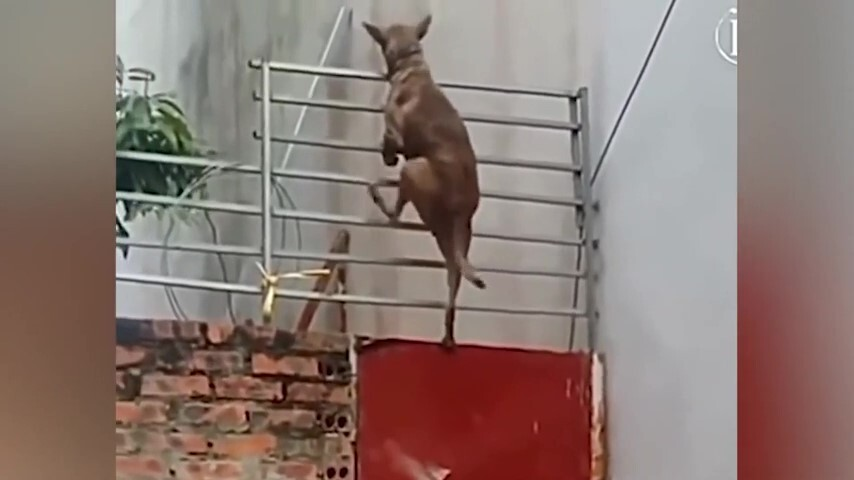 Clip: 'Siêu chó' trèo cổng cao chót vót để trốn đi chơi
