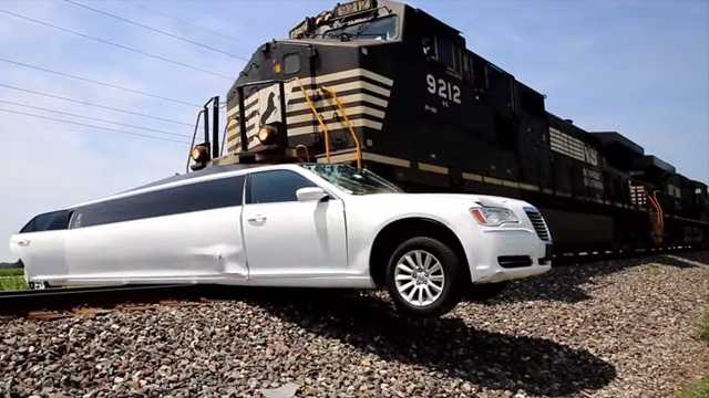 Clip: Siêu xe Limo bị tàu hỏa húc kinh hoàng