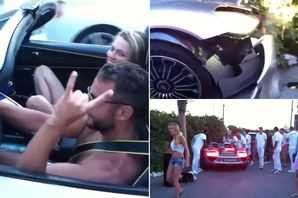 Chủ nhân chiếc xe mui trần giá triệu đô tự tin ngồi sau vô lăng với cô bạn gái tóc vàng xinh đẹp bên cạnh. Ngay sau đó là giây phút bẽ bàng khi anh chàng nhấn ga quá mạnh khiến chiếc xe đâm sầm vào cây và đầu xe gần như nát bét.