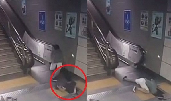 Mảnh sàn bằng kim loại bị hư hỏng vô tình biến thành "bẫy tử thần" khiến một phụ nữ gặp nạn, may mắn cô được giải cứu nhanh chóng và chỉ bị thương nhẹ; sự việc xảy ra tại một ga tàu điện ngầm ở thành phố Thâm Quyến, tỉnh Quảng Đông, Trung Quốc.