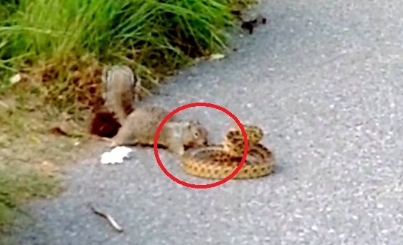 Thấy rắn mon men lại gần tổ của mình, sóc liền hung dữ tấn công rắn tới tấp để bảo vệ lãnh thổ.