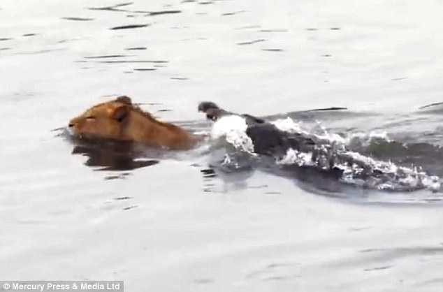 Clip: Sư tử thoát chết từ hàm cá sấu