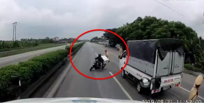 22/08/2019 08:00:00 +07:00Vòng ngược chiều để trốn sự truy đuổi của CSGT ở Hải Dương, một người đàn ông đi xe máy suýt chút nữa bị xe container đâm trực diện.